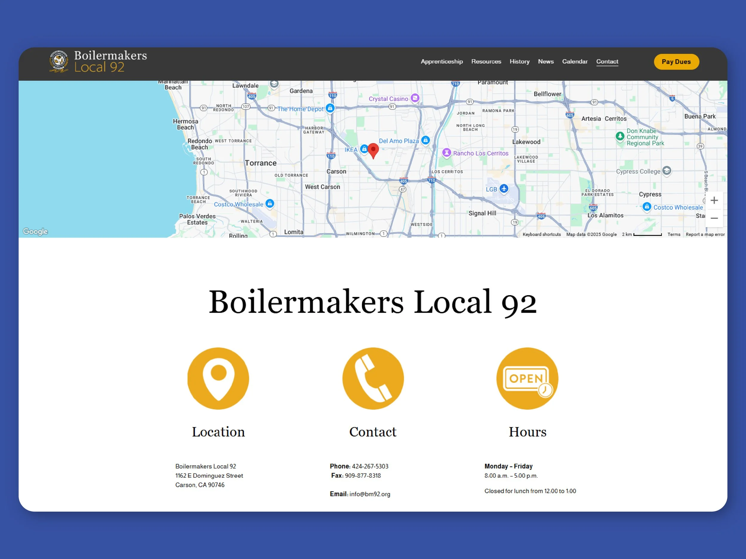 Boilermakers Local 92 had a bare-bones site that needed more information from members, and updated information on a new location.